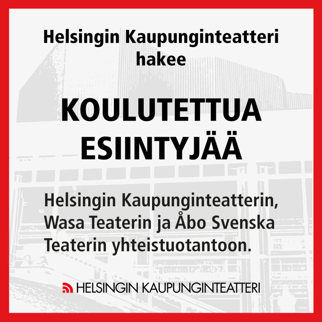 Etsimme koulutettua esiintyjää Helsingin Kaupunginteatterin, Wasa Teaterin ja Åbo Svenska Teaterin yhteistuotantoon.